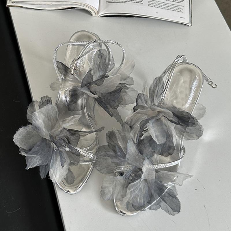 Брендовые Модные Дизайнерские Сандалии Женские Узкий Ремешок Открытый Носок Ремешок на Щиколотке Высокий Каблук Вечерние Туфли для Выпускного Вечера Женские Серебряные Сандалии 40 серебряный