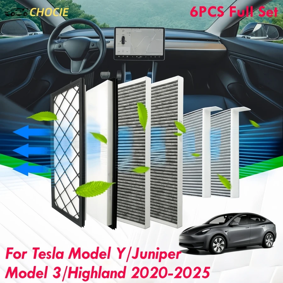 6PCS Full Set HEPA Air Intake Filter Cabin Air Filter for Tesla Model Y/Juniper Model 3/Highland 2020-2025 Biochemical Defence