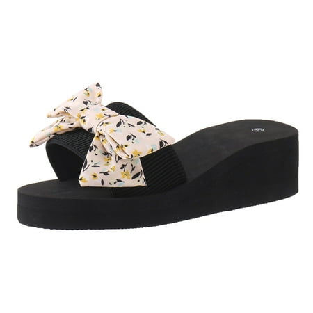 Cathalem Bohemian Slippers For Women Ladies Flip Flops Open Toe Flowers Summer Sandals Casual Shoes Black 37
