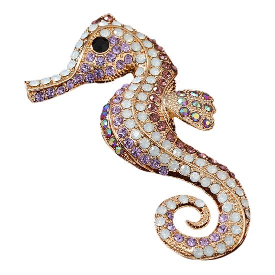 Брошь Морской конёк Ретро Стиль Осень Зима Стразы Значок на лацкан Аксессуар для пальто Значок фиолетовый