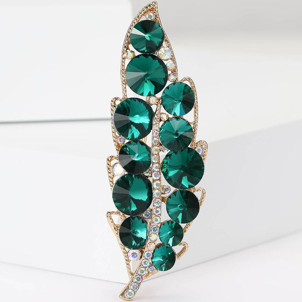 Брошь-булавка в виде листа из кристаллов, броши со стразами золотого тона, ювелирные изделия для свадебной вечеринки, подарок зелёный