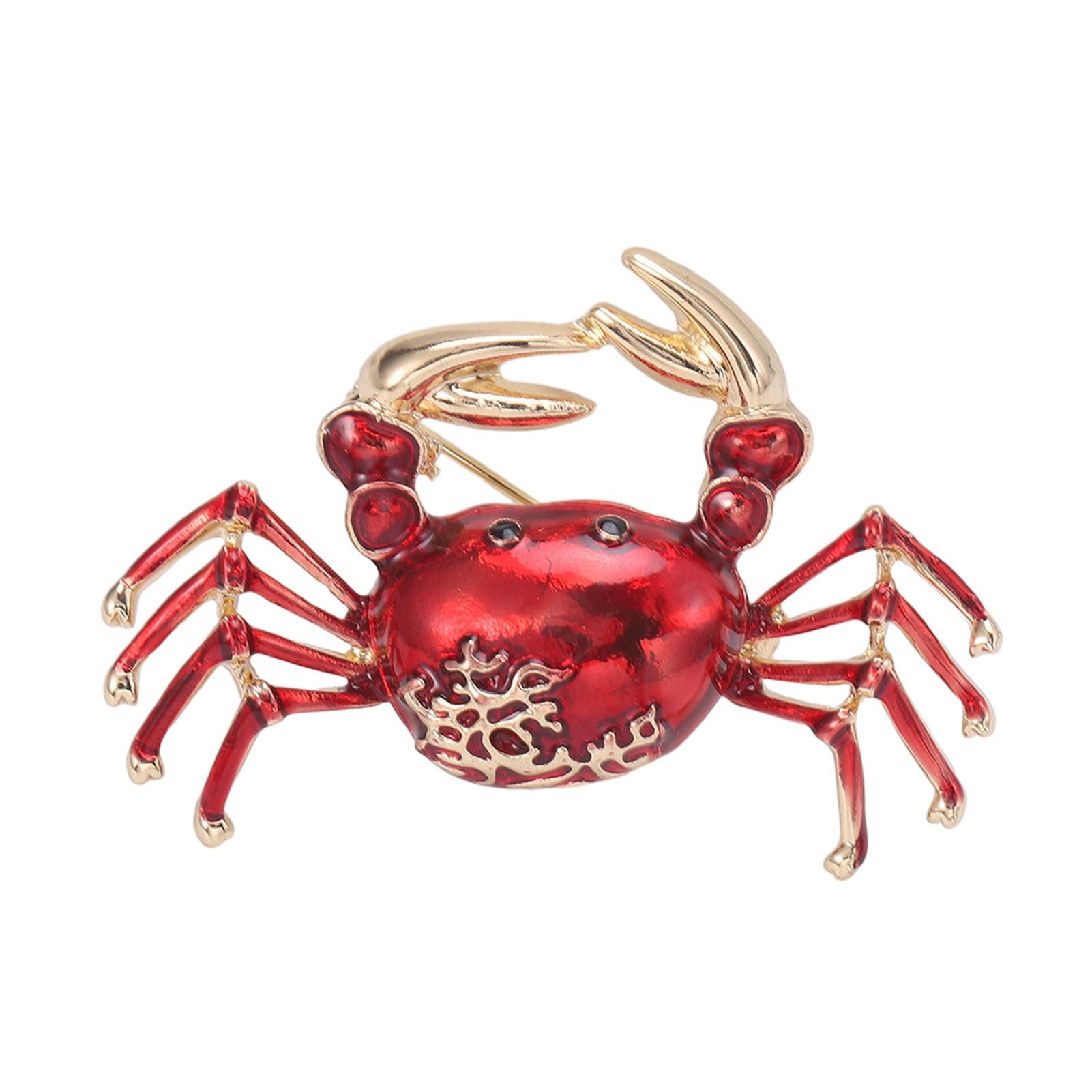 Брошь в форме краба с эмалью в стиле ретро — изысканная булавка из сплава, значок на лацкане костюма, ювелирный подарок, аксессуары для женского пальто красный
