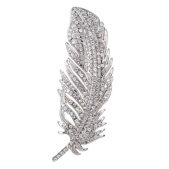 Брошь в форме пера, декор со стразами, украшение для одежды, антикоррозийная, антиокислительная, одежда для торжественных случаев, ювелирные изделия, женский деловой подарок серебряный