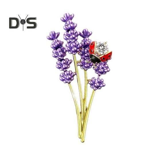 Брошь лаванды с декором в виде божьей коровки, воротник пальто, платье, шарф, шляпа, украшение, булавка, капающее масло, насекомое, цветок, брошь для официальной вечеринки, свадьбы фиолетовый