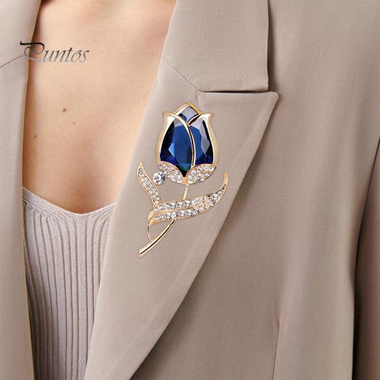Брошь-цветок тюльпана со стразами, элегантные аксессуары для одежды, свитер, кардиган, пальто, деловой костюм, булавка с лацканами, модные ювелирные изделия, подарок