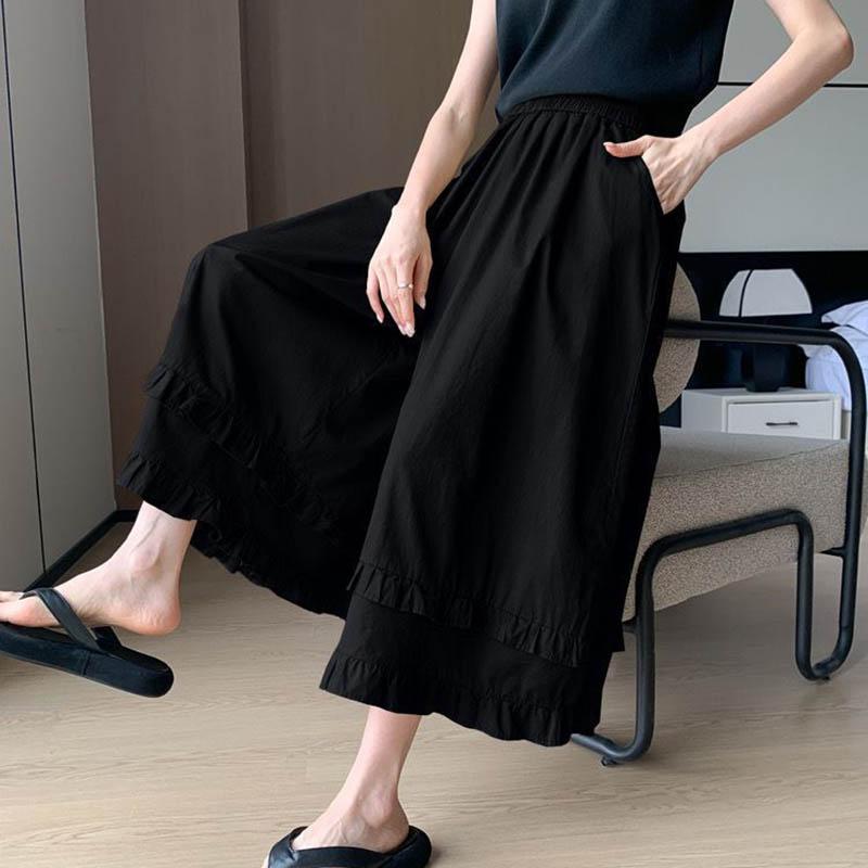 Брюки Летние Женские Большого Размера Свободные Юбки Брюки Универсальные Повседневные С Высокой Посадкой Широкие Прямые Однотонные Брюки M чёрный