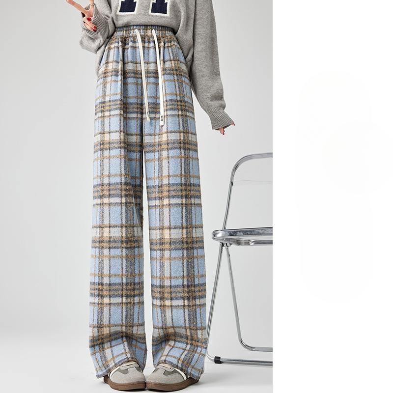 Брюки в клетку для женщин, весна и осень, новые, с высокой талией, драпированные, прямые, повседневные, маленькие, широкие брюки из шерсти в стиле ретро XL