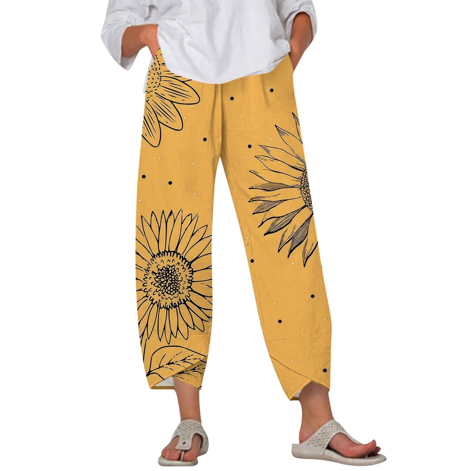 Брюки женские летние повседневные широкие брюки с эластичной резинкой на талии и карманами XL жёлтый