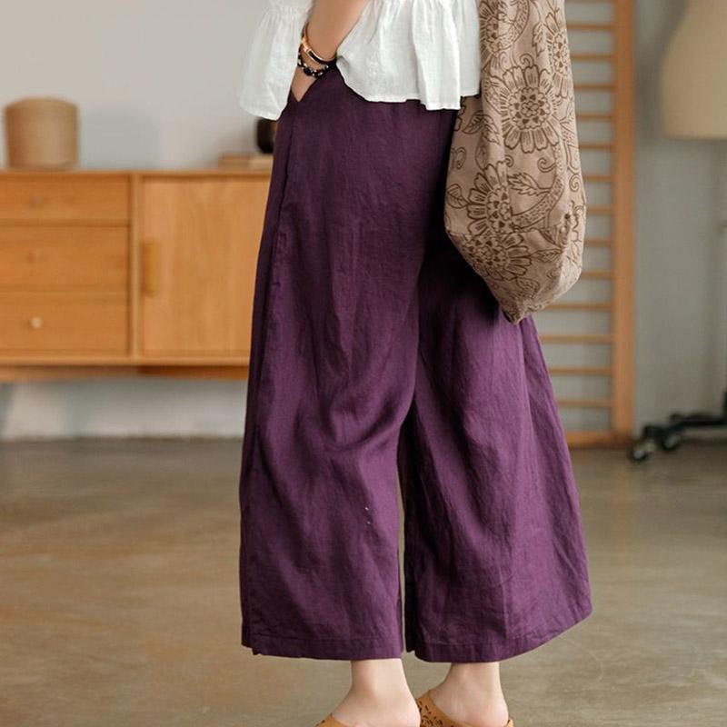 Брюки летние женские большие размеры хлопковые свободные пижамные брюки универсальные повседневные однотонные широкие льняные брюки XXL фиолетовый