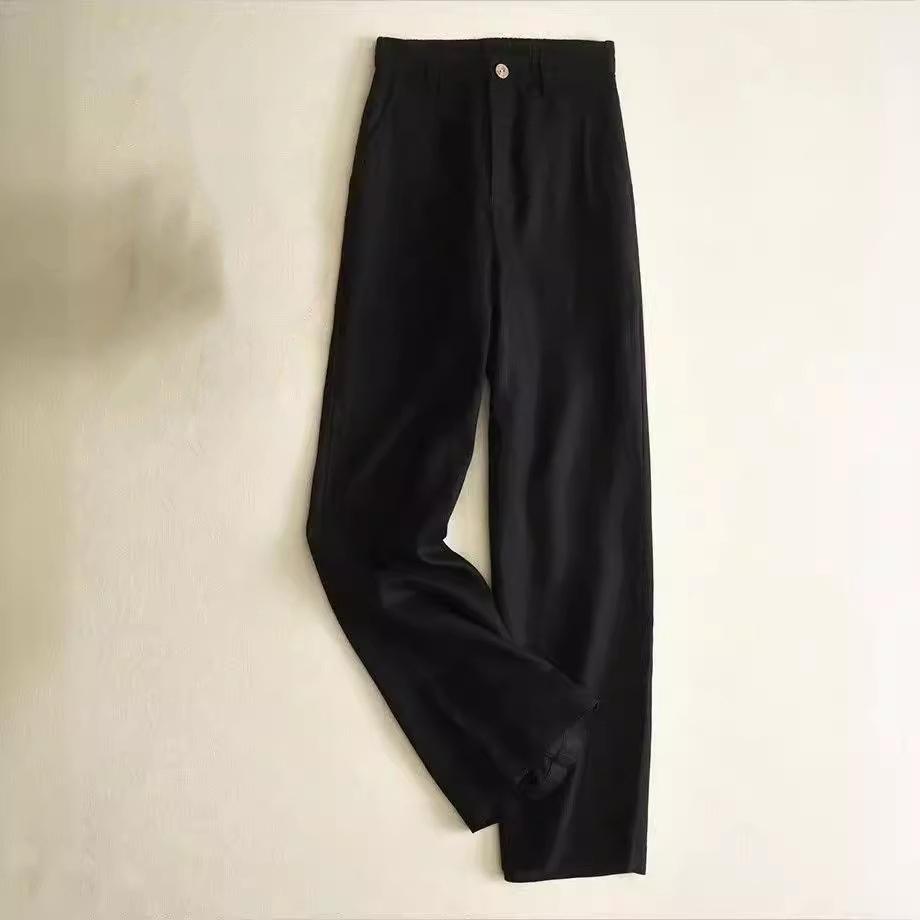Брюки полной длины из хлопка и льна с высокой посадкой женские элегантные прямые с широкими штанинами женские однотонные уличные брюки XS чёрный