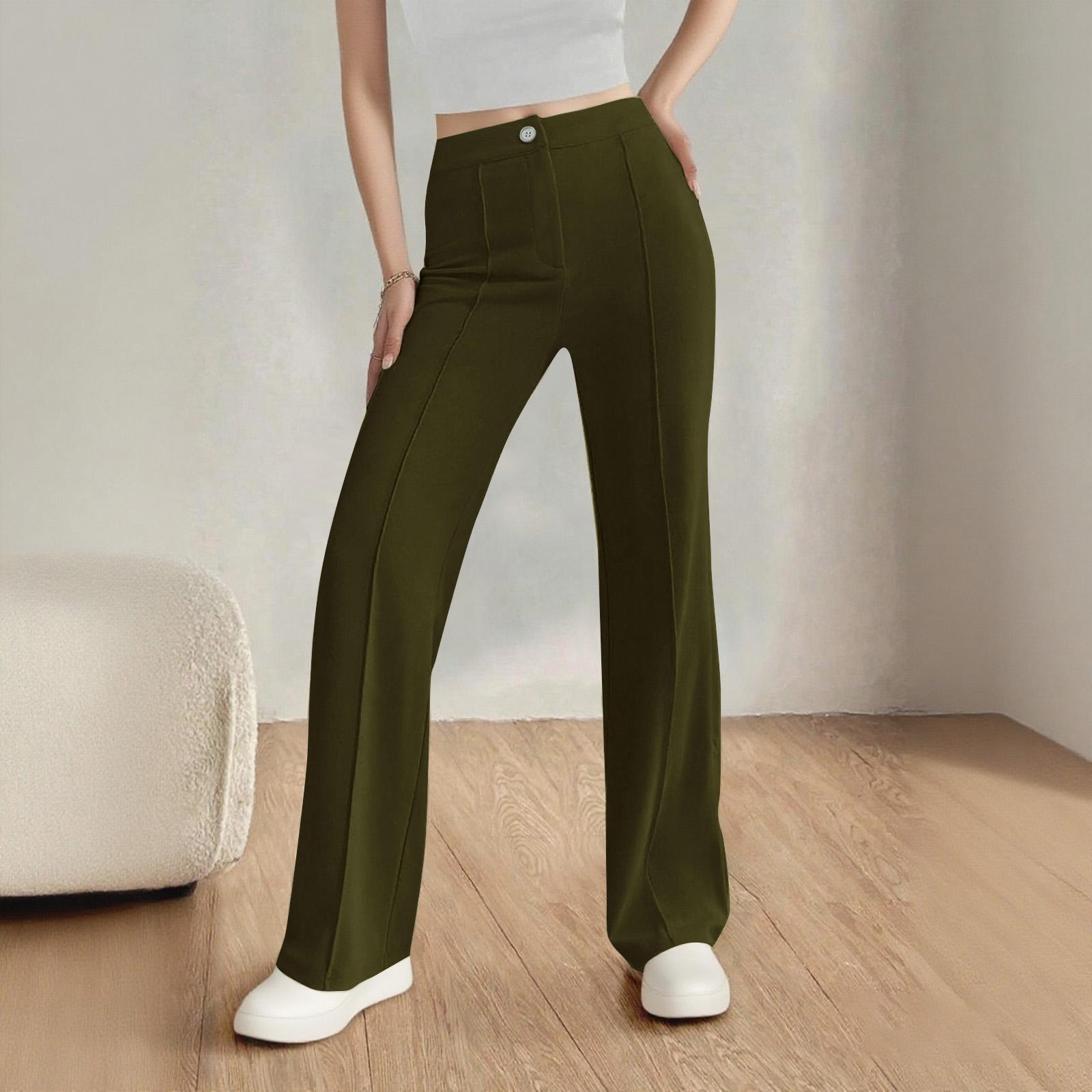Брюки прямого кроя на резинке и пуговице, деловые кэжуал, для работы, вязаные, с эластичной талией, повседневные L армия зеленый