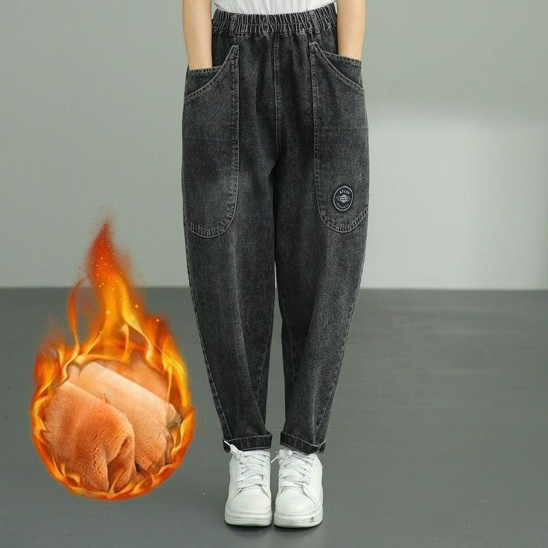 Брюки с высокой талией больших размеров, плюс бархатные, толстые, эластичная талия, укороченные брюки, джинсы Харлан, для полных, ММ, ретро S чёрный