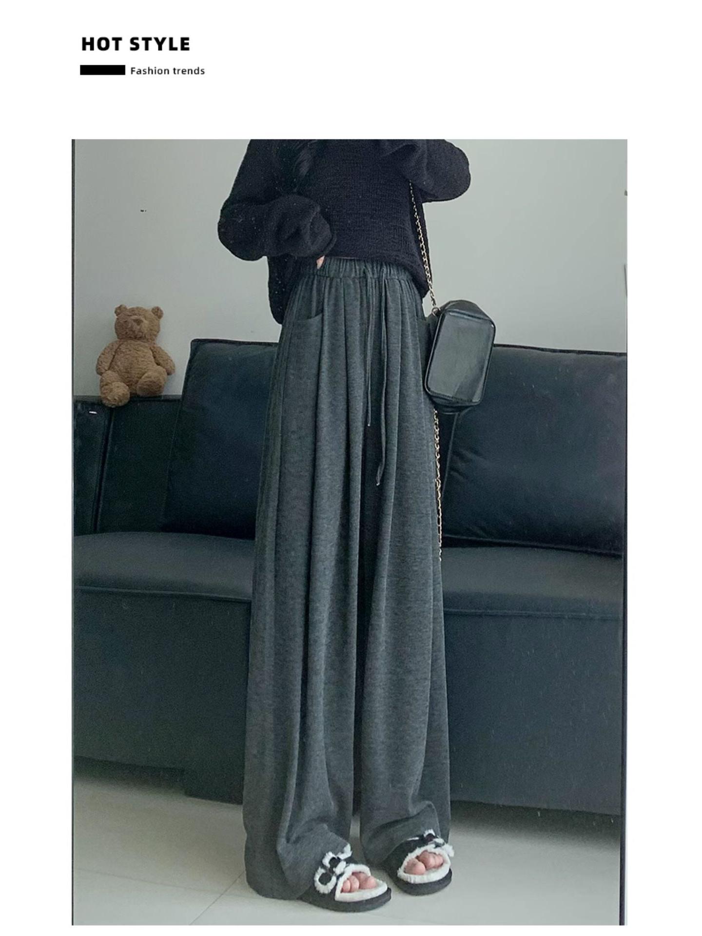Брюки с завышенной талией, облегающие, в корейском стиле, с широкими штанинами: Универсальные драпированные брюки прямого кроя на осень/зиму для женщин Dark Gray (Spring/Autumn)