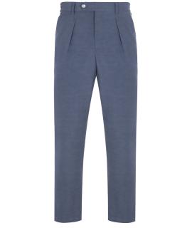 -Брюки из хлопка в голубом цвете от STILE LATINO.-Средняя посадка, прорезные карманы, шлевки, застежка - молния и пуговица.