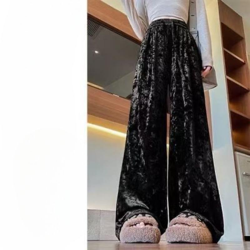 Брюки широкие из золотистого бархата с принтом тай-дай для женщин на осень и зиму, новый стиль, ленивый темперамент, высокая талия, прямые, драпированные, повседневные брюки широкие 2XL
