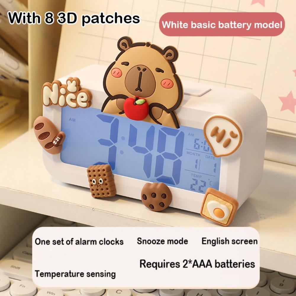 Будильник с зарядкой Капибара Электронные часы Мультяшные студенческие часы White basic battery model