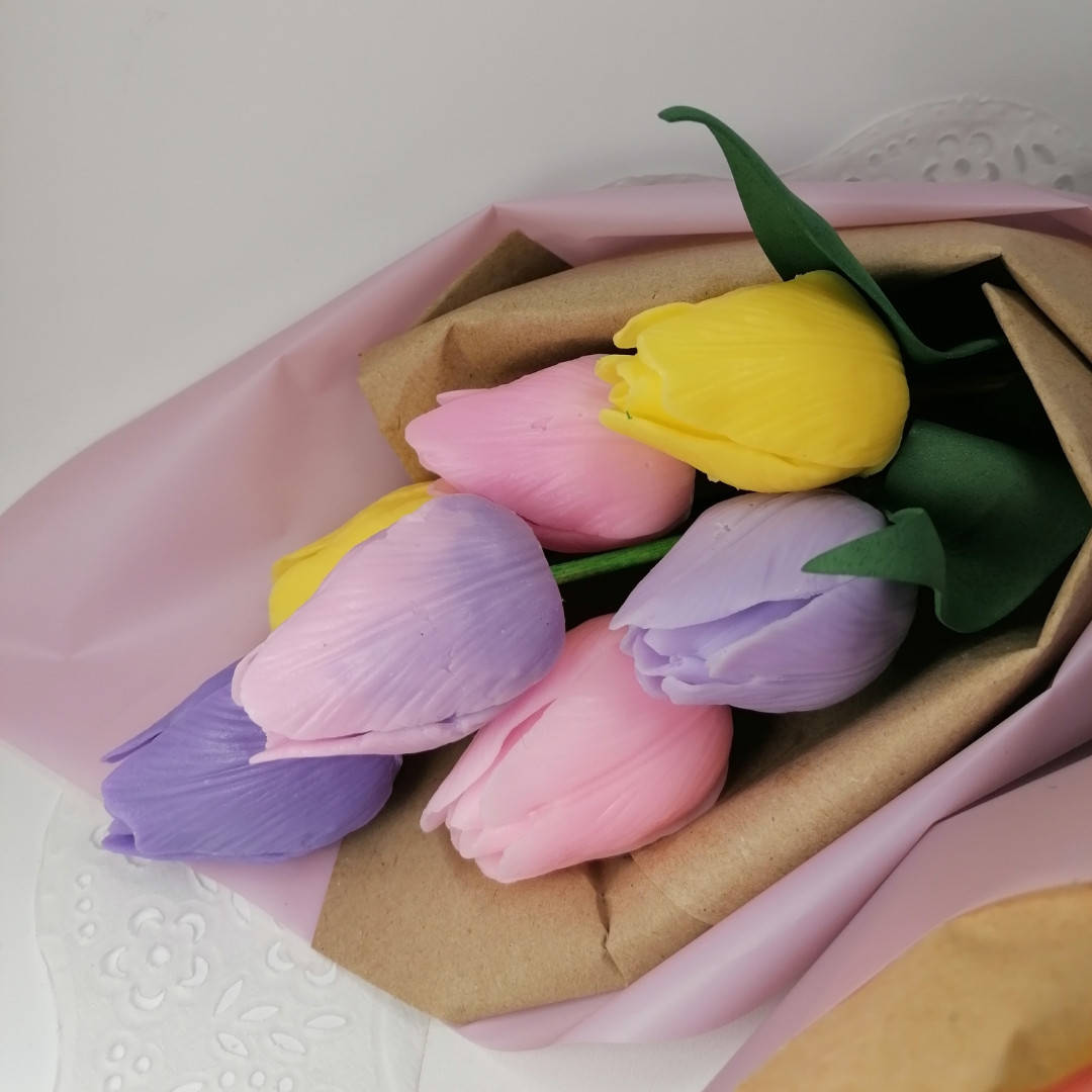 Букет из мыльных цветов тюльпаны Цветочная композиция из мыла ручной работы Мыльный букет