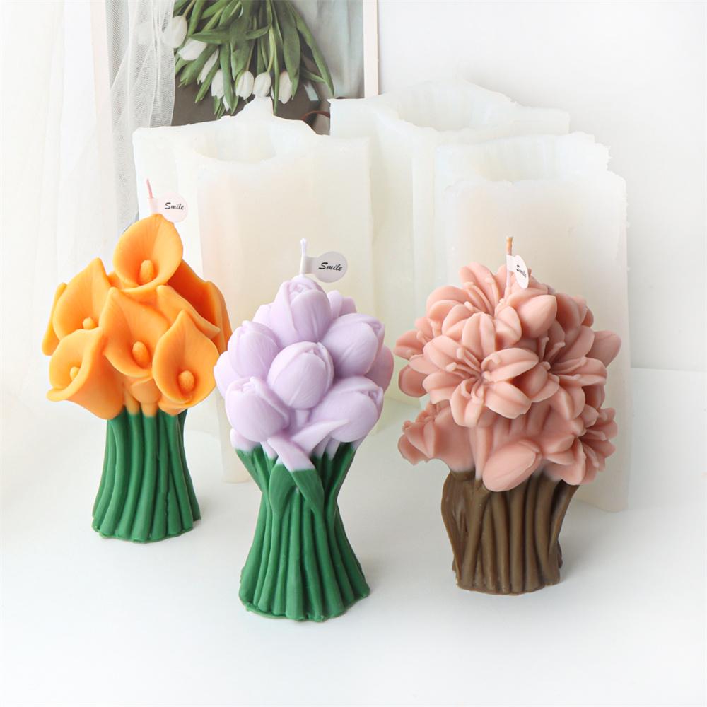Букет роз Пион Силиконовая форма 3D Ароматерапевтическая свеча Цветок Лилия Тюльпан Каллилия Мыло Украшение стола