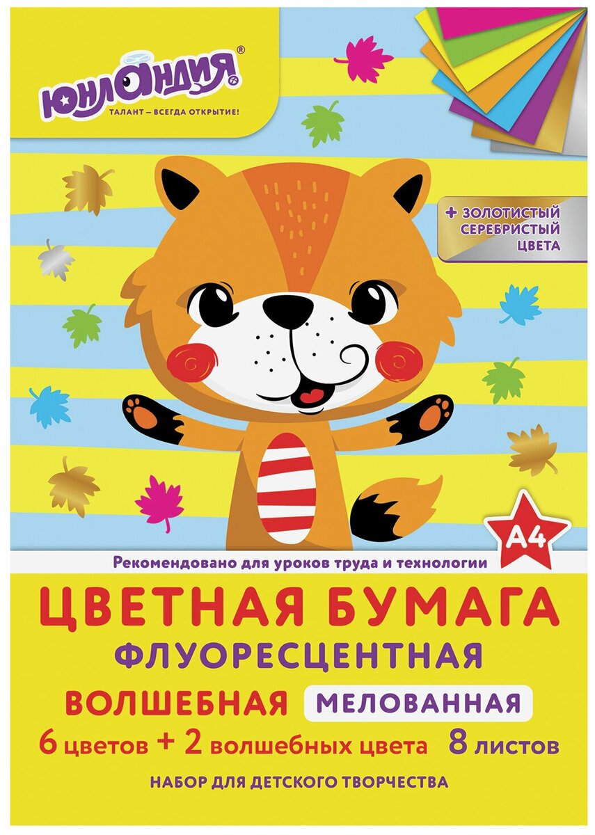 Бумага цветная Юнландия Волшебная А4 8 листов, 8 цветов