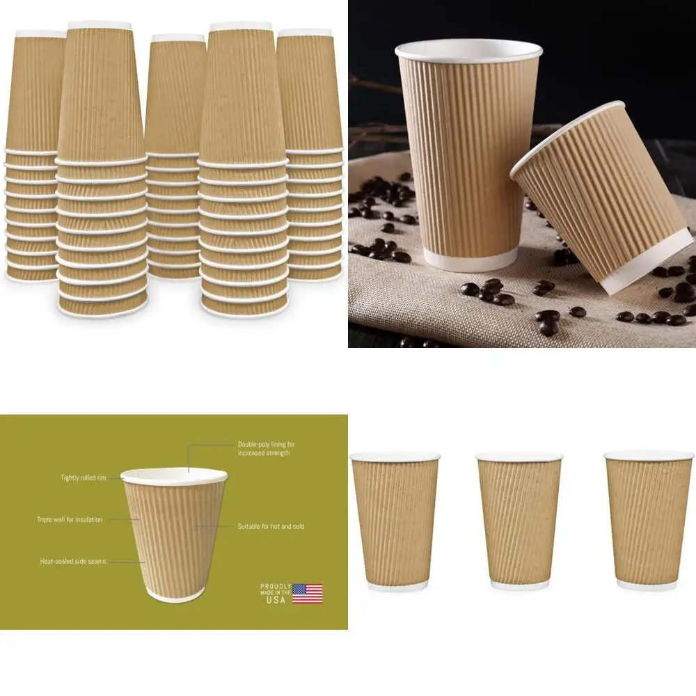 Бумажные стаканчики на 16 унций, 200 упаковок — Массовые чашки для кофе и чая для дома, офиса, ресторана и кофейни — сделано в США | Одноразовый Be