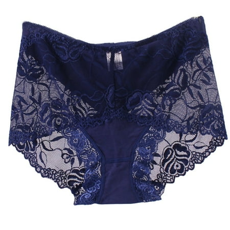 Qingsaizhen Briefs Sexy Women Solid Color High Waist Lace See Through Underpants Elastic Briefs