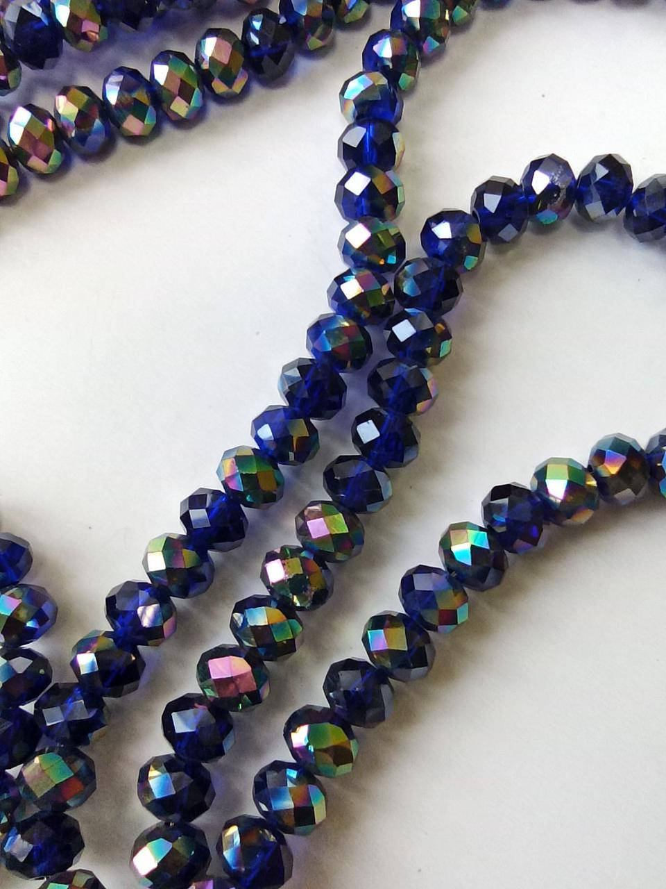 Бусины хрустальные (Рондель) 6*4 мм, пачка 95-100 шт, цвет - синий прозрачный с металлическим переливом