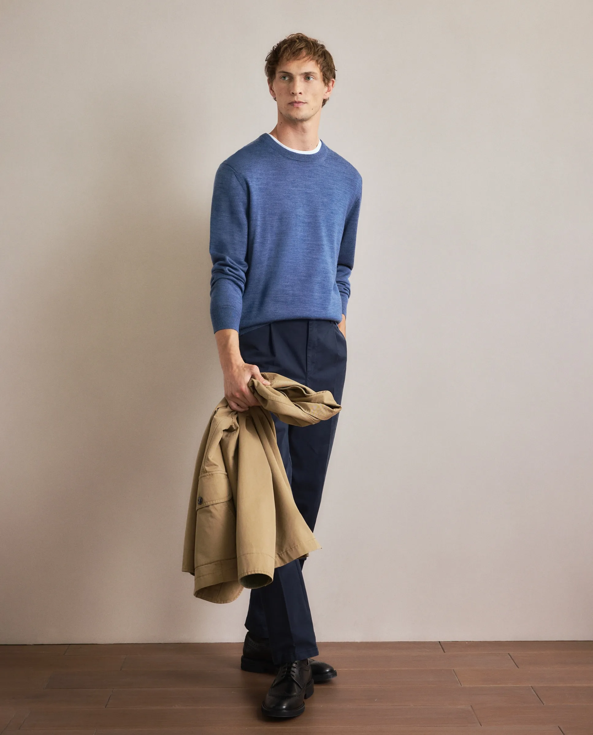 Джемпер с круглым вырезом гладкий 100% шерсть мериноса Emidio Tucci, синий