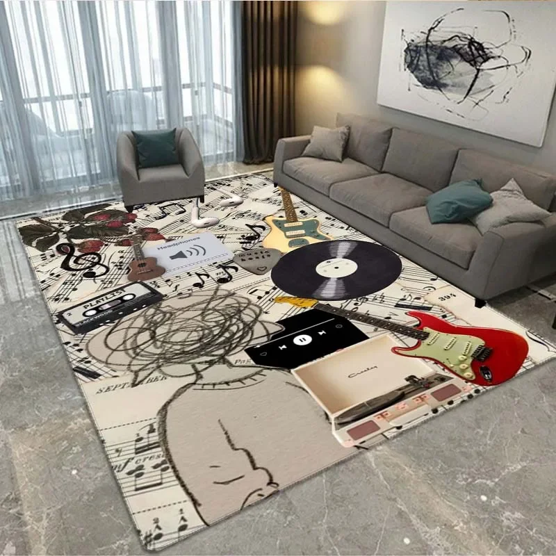 3D Music Tape Retro Pattern Carpet Living Room Sofa Bed Carpet Home Decor Bedroom Hallway Floor Mat Birthday Cool Gift