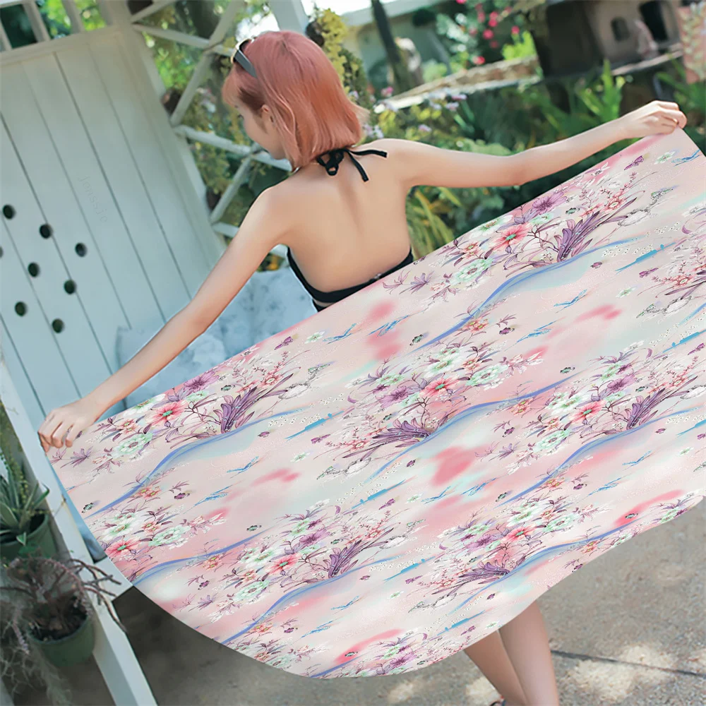 Быстросохнущее пляжное полотенце из микрофибры, банное полотенце с принтом животных и цветов, летняя пляжная шаль, одеяло для шезлонга, ква...