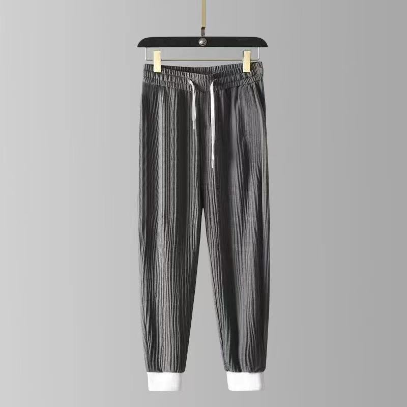 Быстросохнущие брюки из ледяного шелка, мужские летние тонкие эластичные дышащие свободные уличные спортивные брюки длиной до икры M серый