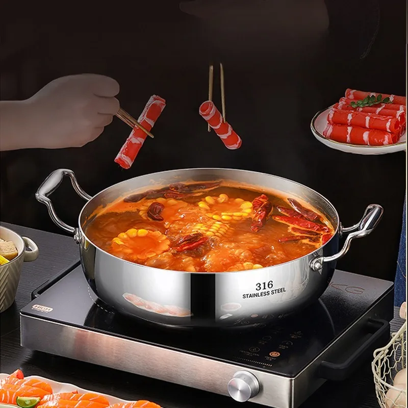 Бытовая кастрюля для супа из нержавеющей стали 316, утолщенная газовая электромагнитная плита, специальная кастрюля с двойным ушком для приготовления супа