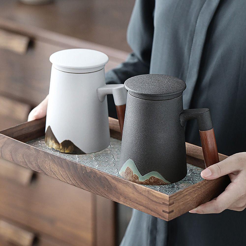 Бытовая кофейная кружка с деревянной ручкой, стакан для воды, керамическая чашка для чая ручной работы
