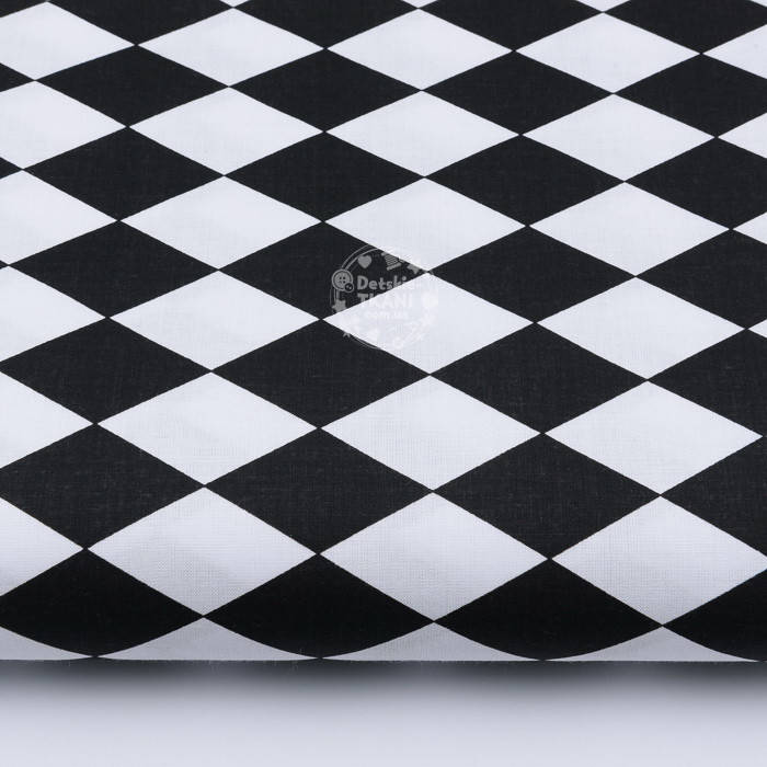 Бязь польская "Ромбы чёрно-белые Арлекин" (№ 620), Черный