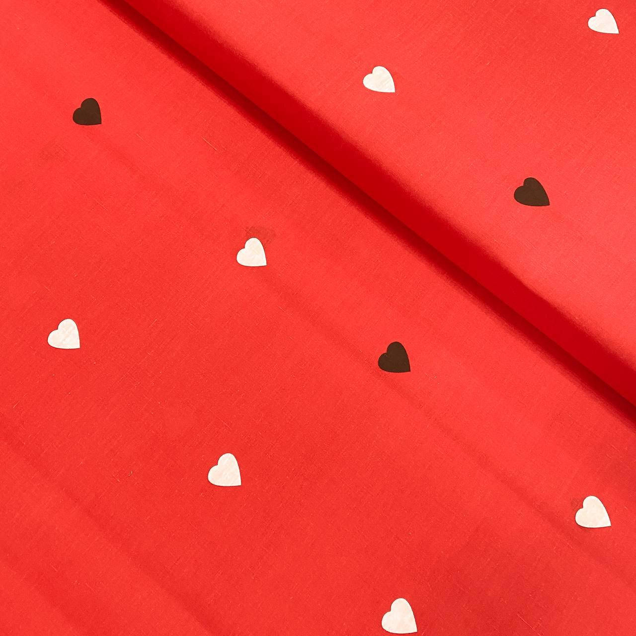 Бязь Gold "Сердца белые, черные на красном" 220 см, Разные цвета