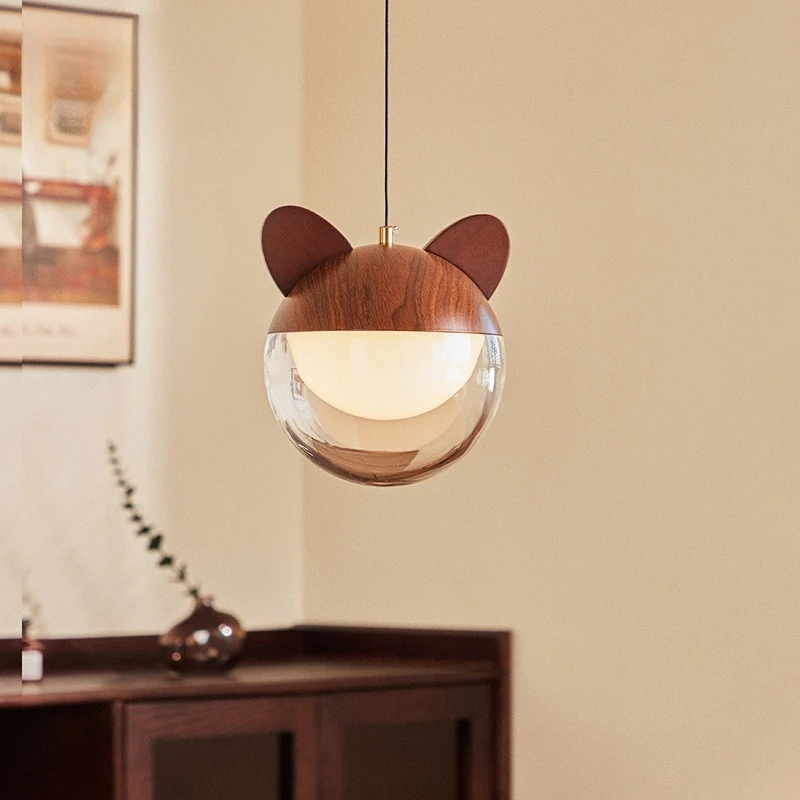 Ваби-Саби Стиль Ретро Твердая Деревина Кошачьи Уши Дизайн Светодиодные Подвесные Светильники Гостиная Спальня Прикроватная Тумбочка Симпатичное Украшение Потолочной Люстры