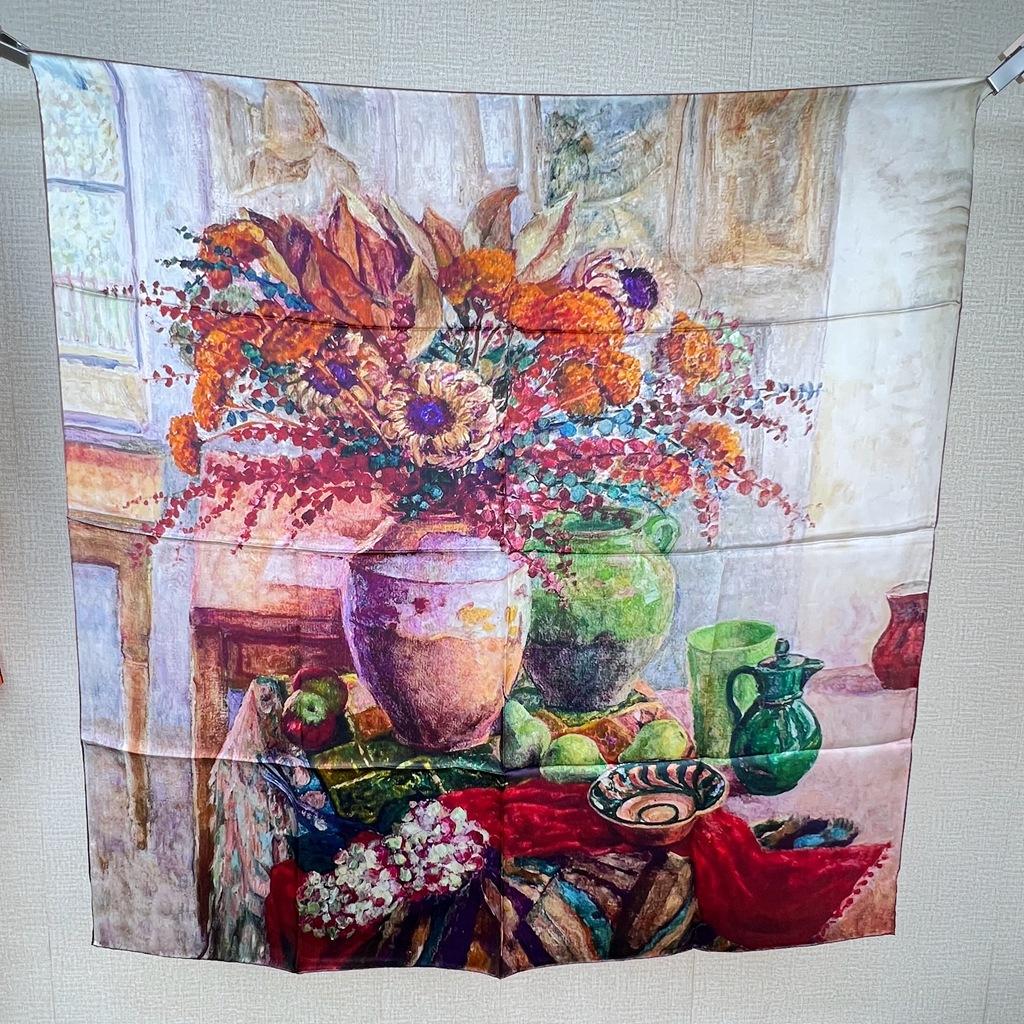 Ваза Деревенская Живопись Малиновый Шелковый Шарф Весна Осень Лето Шелковый Шарф Солнцезащитная Шаль Женский Шелковый Квадратный Шарф 108X108CM