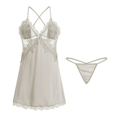 BSDHBS Lingerie for Women Backless Sweet Girl Small Floral Plus Chest Pad Nightdresss Outer Robe Home Clothes Suit Blue Size L