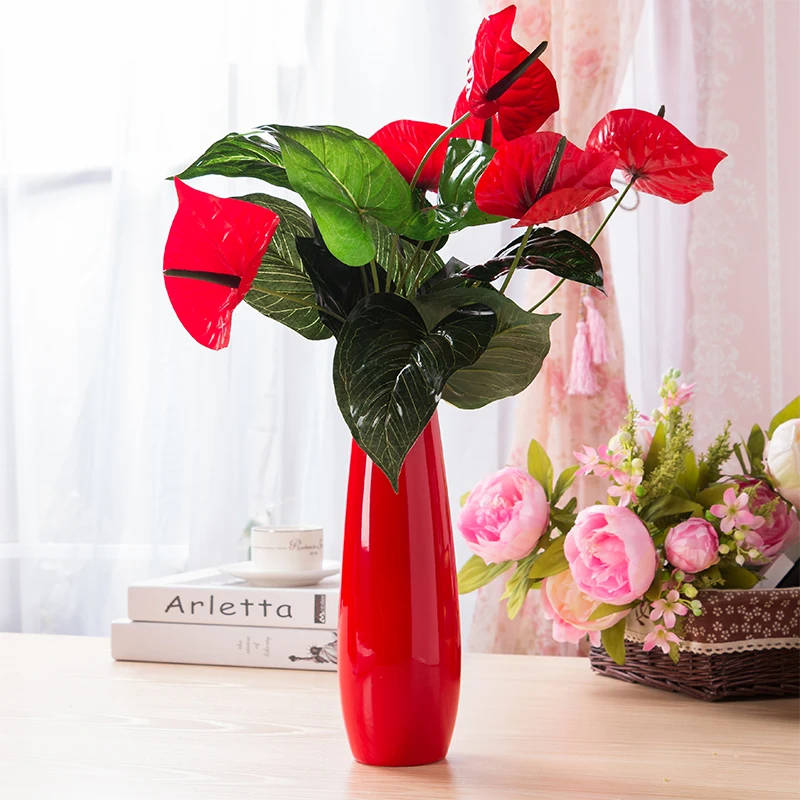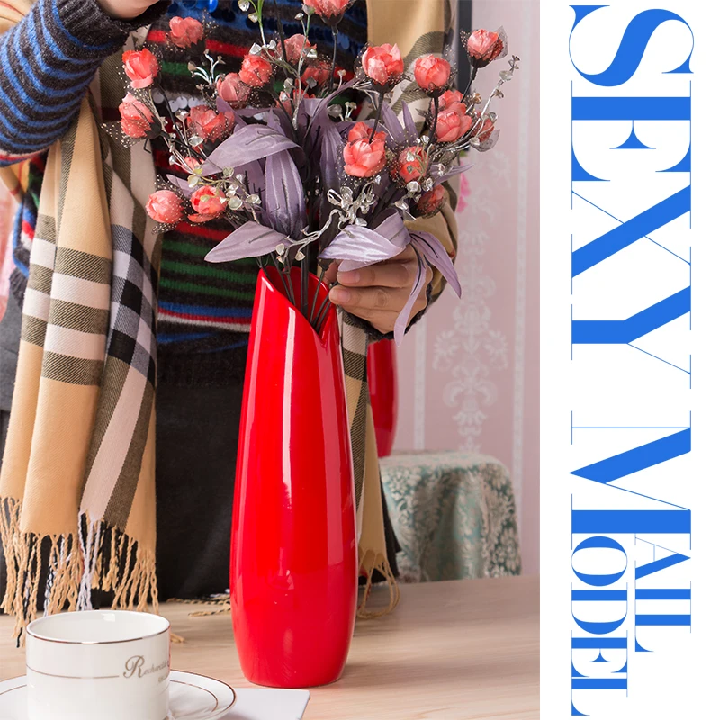 Ваза большой размера из красных цветов и фарфора, вертикальная ваза, современная модная Настольная Ваза для свадебного декора, европейская ...