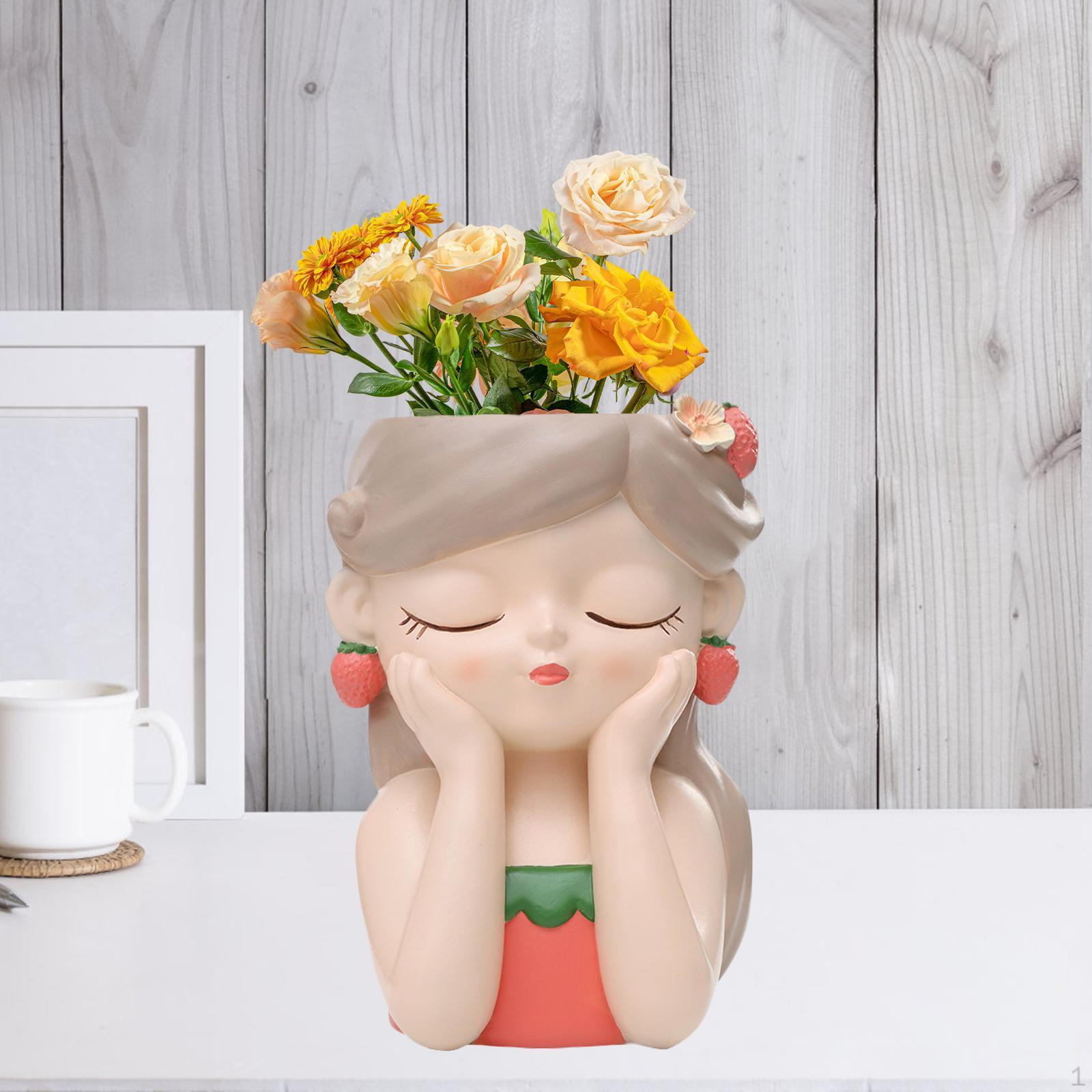 Ваза-бюст, комнатный цветочный горшок, декоративная фигурка в форме девушки-цветочницы, кашпо для офиса, балкона 13cmx13cmx17.5cm