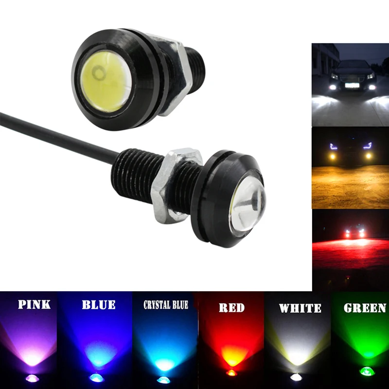 1pcs 12V 18MM LED eagle eye car fog DRL daytime reverse parking signal yellow blue white red waterproof daytime running lights
