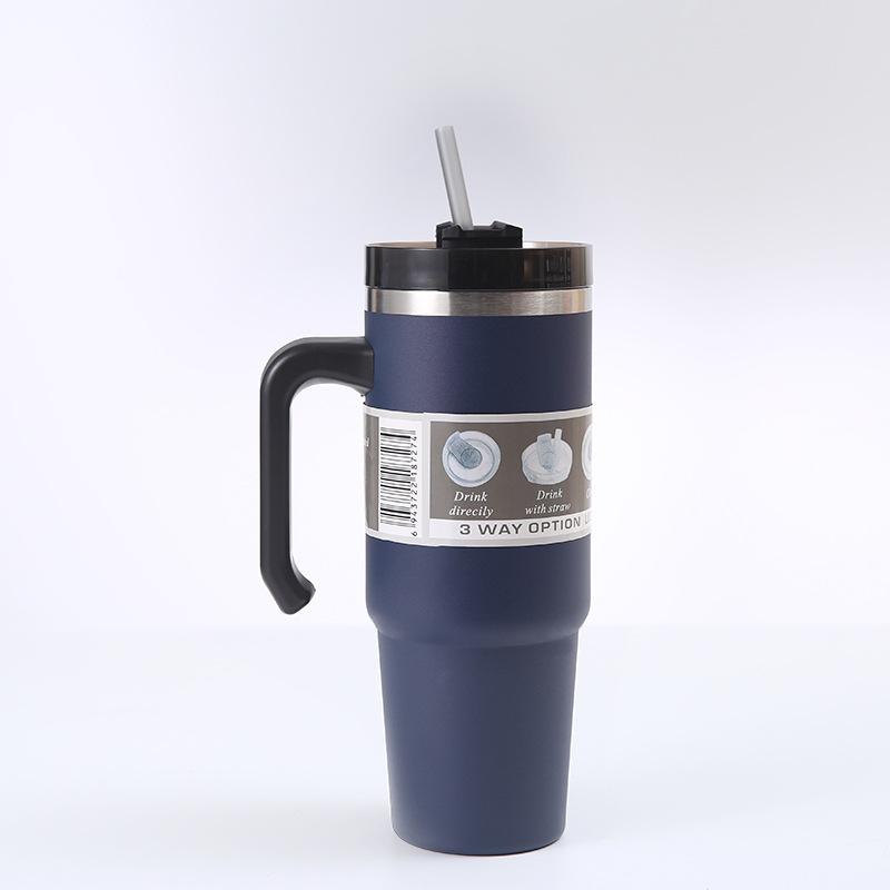 Вакуумный автомобильный термокружка, переносная наружная ручка с трубочкой, большая емкость, двухслойная 2. H30 унций 30oz