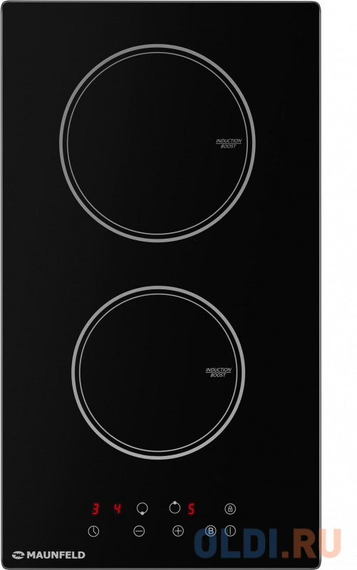 Варочная панель индукционная Maunfeld AVI292BK черный, Функция BOOSTER., 9 уровней мощности., Мощный вентилятор охлаждения., Диаметр конфорок составляет 160 мм и 180 мм. Одна конфорка мощностью 1500 Вт , вторая - 2000 Вт.