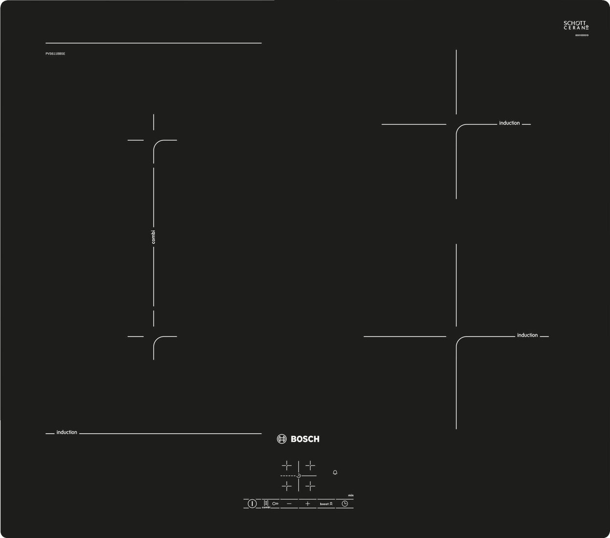 индукционная на 4 конфорки, cтеклокерамика, мощность: 6900 Вт, независимая установка, размеры (ШхГ): 59.2x52.2 см