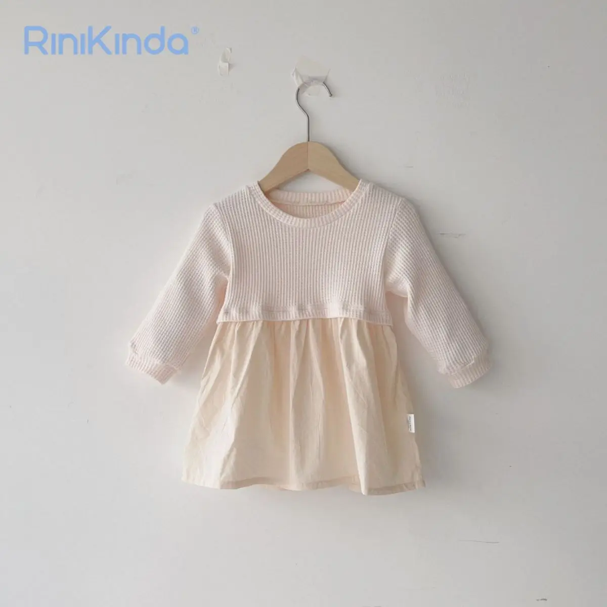 Вафельные платья для девочек, новинка 2023, однотонное лоскутное ДРАПИРОВАННОЕ ТРАПЕЦИЕВИДНОЕ ПЛАТЬЕ для маленьких девочек, модные детские платья принцессы, осень-весна