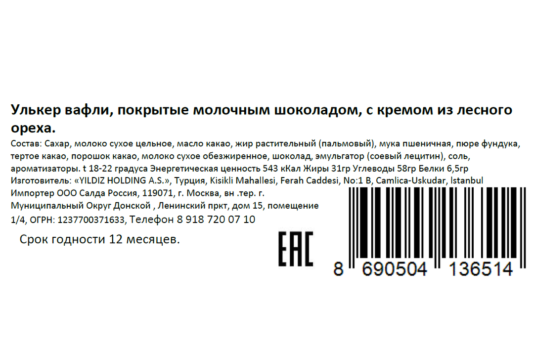 Вафли Ulker Maxi с кремом из лесного ореха в молочном шоколаде 47 г