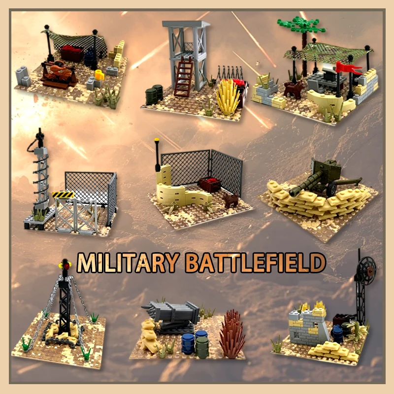 Sand Field Military Outpost Command Camp DIY Special Forces Scene Small Particle Building Blocks Set MOC Boy Surprise XMAS Gifts