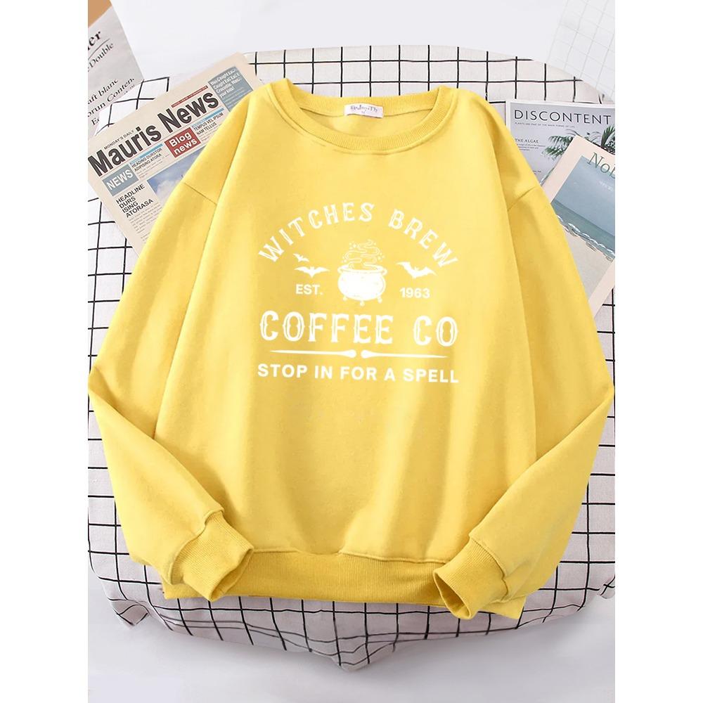 Ведьмы варят кофе с буквами, простая однотонная печать с буквами, женские толстовки с длинными рукавами, теплые свитера, одежда XL