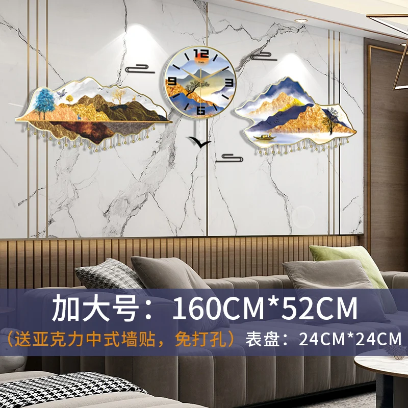 Living room decoration stylish atmosphere clock sofa TV background wall painting light luxury modern mute wall clock
