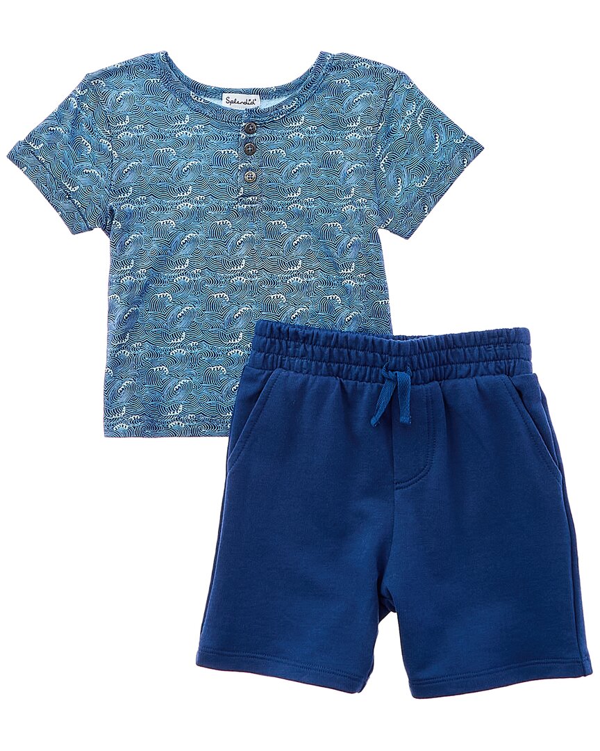 Представляем комплект Splendid из двух предметов: рубашки и шорт в стиле ретро с волнистым принтом - незаменимая вещь в гардеробе вашего малыша. Этот очаровательный комплект выполнен в стиле ретро с рубашкой хенли с закатанными рукавами и шортами на резинке с удобными передними карманами. Изготовленные из смеси 60% хлопка и 40% вискозы, эти вещи мягкие, удобные и идеально подходят для игр или отдыха дома. Благодаря планке на пуговицах этот комплект легко надевать, а машинная стирка делает его стильным и практичным. Этот комплект Splendid, изготовленный с учетом качества, которому вы можете доверять, обязательно станет любимым в коллекции вашего ребенка.
