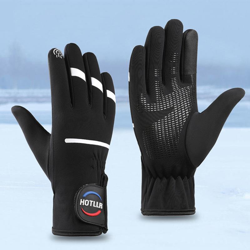 Велоперчатки мужские и женские зимние бархатные теплые для улицы, для катания на лыжах, альпинизма, мотоциклетные, водонепроницаемые, ветрозащитные, с сенсорным экраном M черный белый